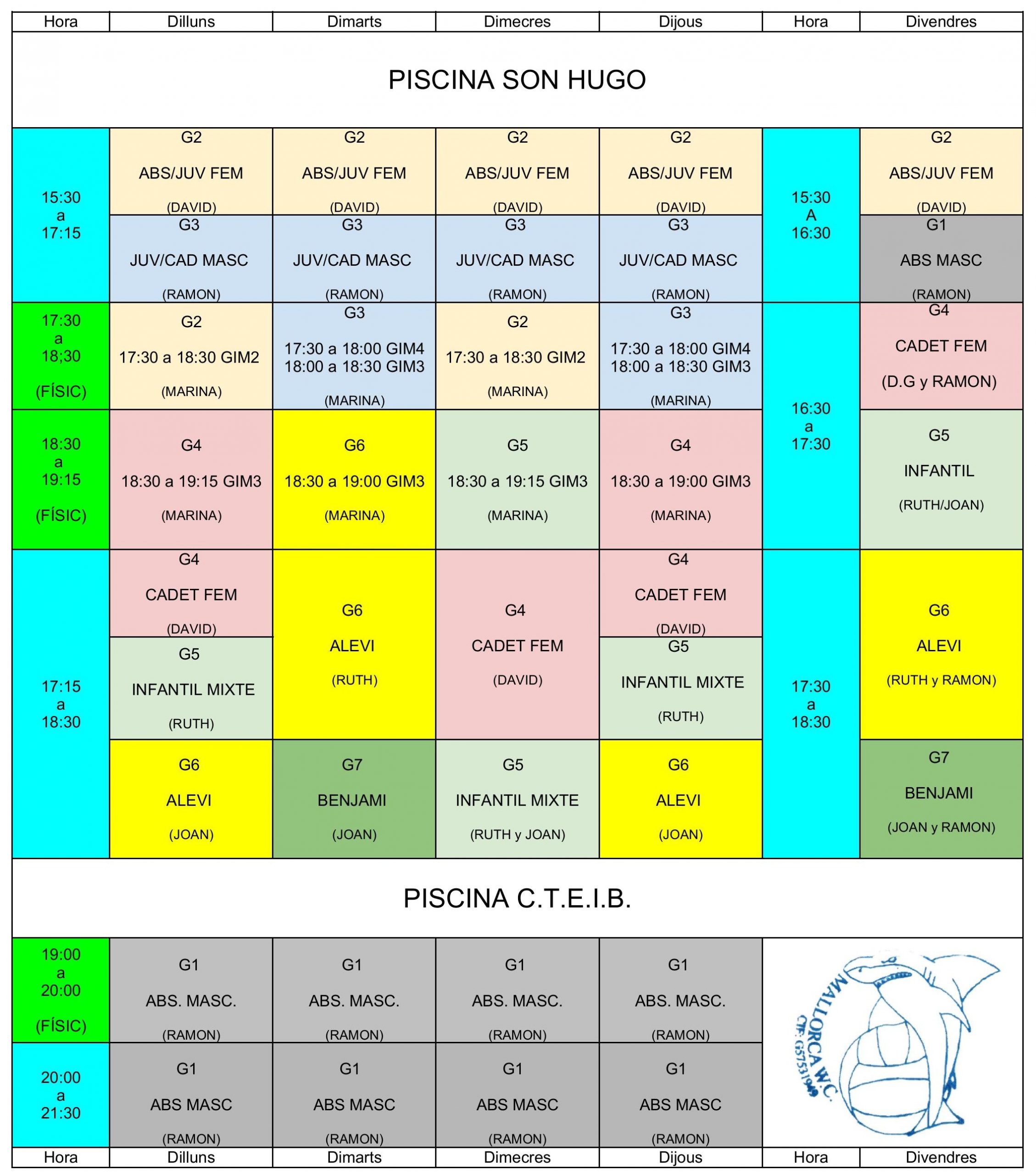 Horarios y grupos de entrenamiento temp. 2025/2026